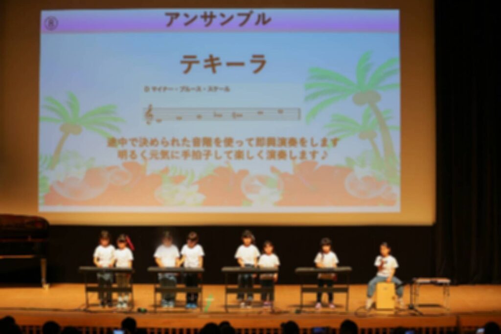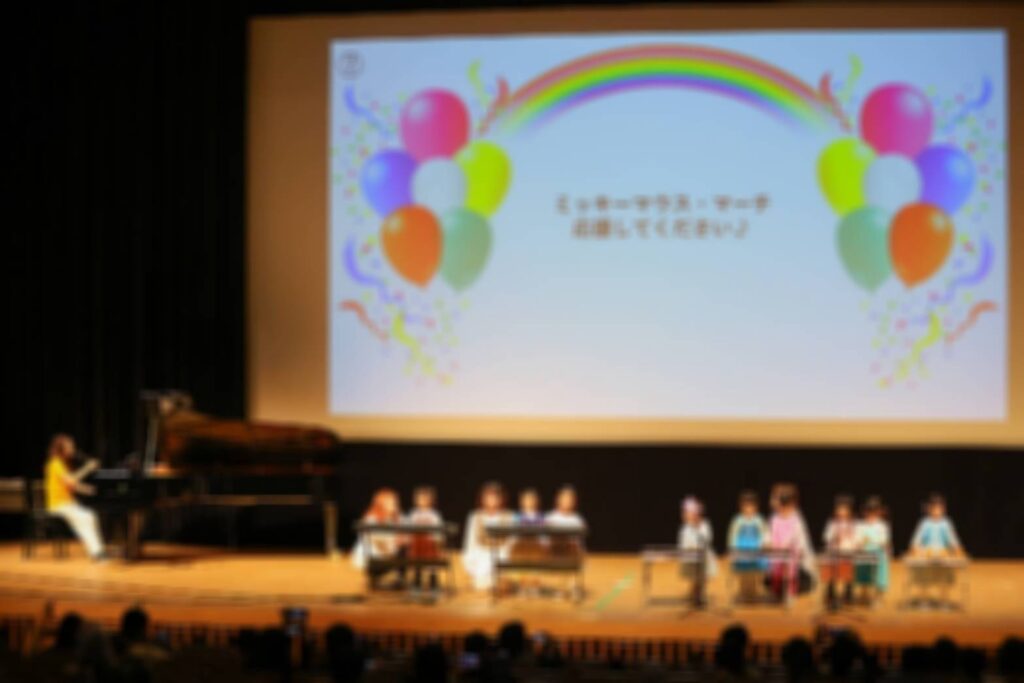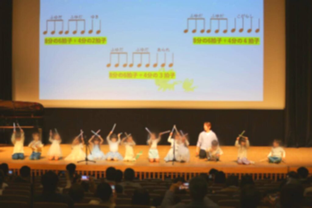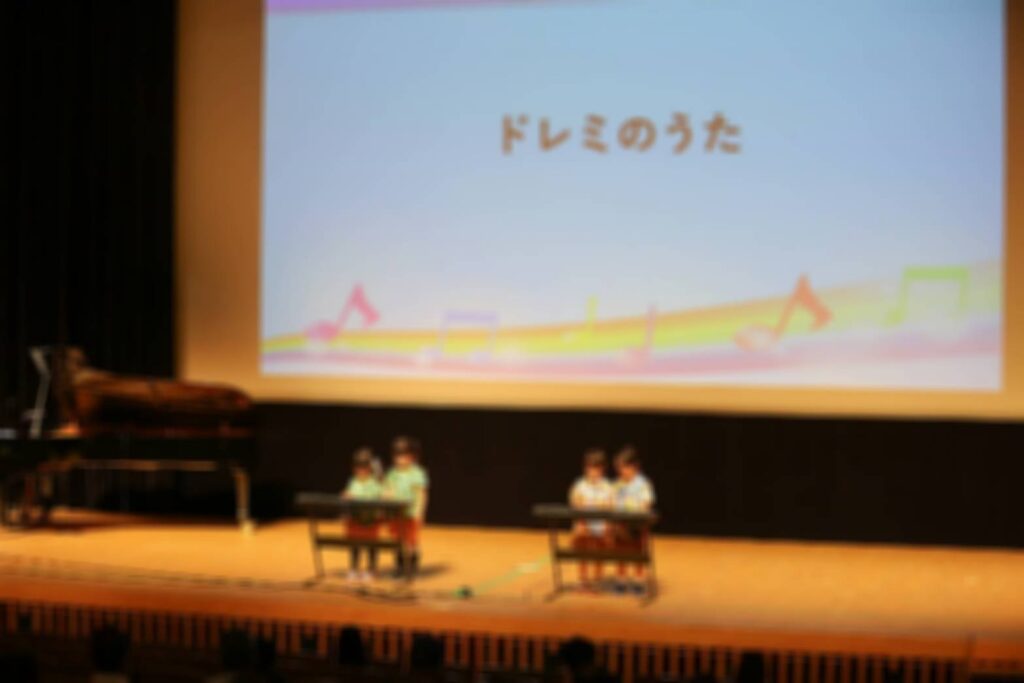 大きなホールでなんと0歳から小学生までがステージで音楽をご披露していきます!