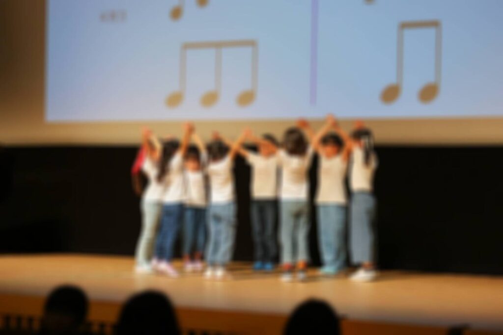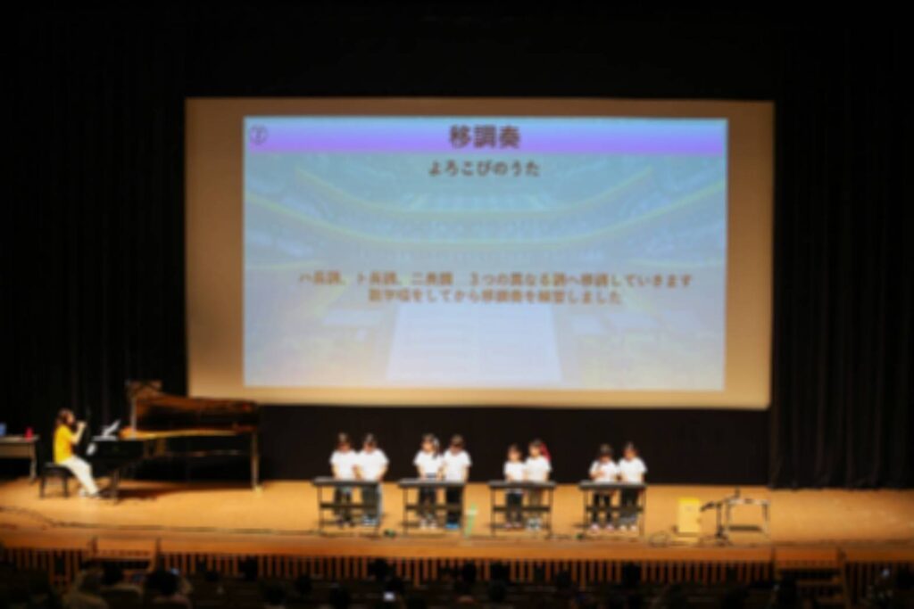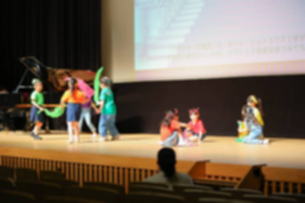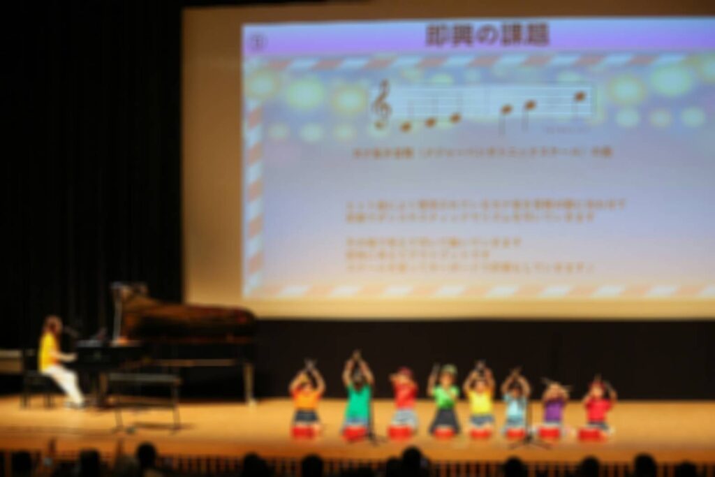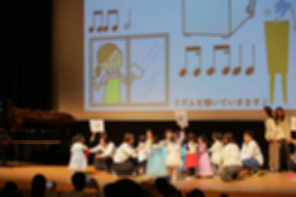 大きなホールでなんと0歳から小学生までがステージで音楽をご披露していきます!